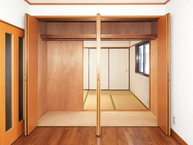 和室の収納は隣の6帖洋室と共用のウォークスルークローゼットです。