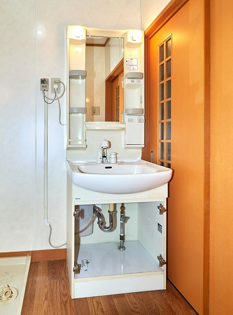 洗髪洗面化粧台。現在補修の為扉を取り外しています